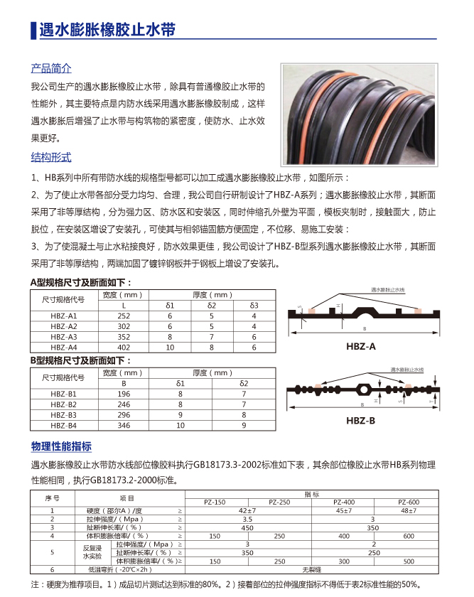 止水帶、止水條及防水材料專業生產廠家